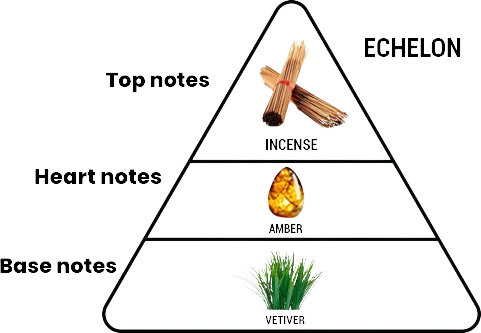 Echelon an Extrait Parfum for Men, epitomizes the height of elegance and refinement. The fragrance opens with the deep, mystical aroma of incense, creating an aura of intrigue and timeless appeal. The heart is warmed by the rich, golden glow of amber, adding a layer of luxurious warmth. The base is grounded by the earthy sophistication of vetiver, leaving a lasting impression of strength and understated elegance.
